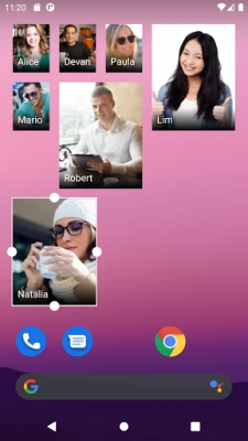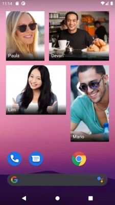 Direct Call Widget enables you to have your contacts in your homescreen in order to call them by just clicking their photo. It's perfect for people with vision problems, as it allows to define the widget dimensions, and for people who are not familiar with the contact list or just want to make call with only one click.