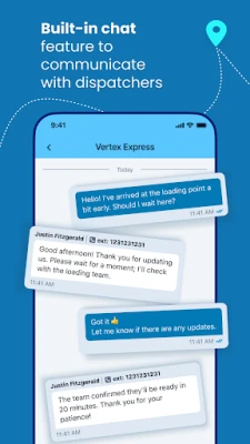 Use the built-in chat feature to communicate instantly with dispatchers. This ensures faster issue resolution and smoother workflow management.
