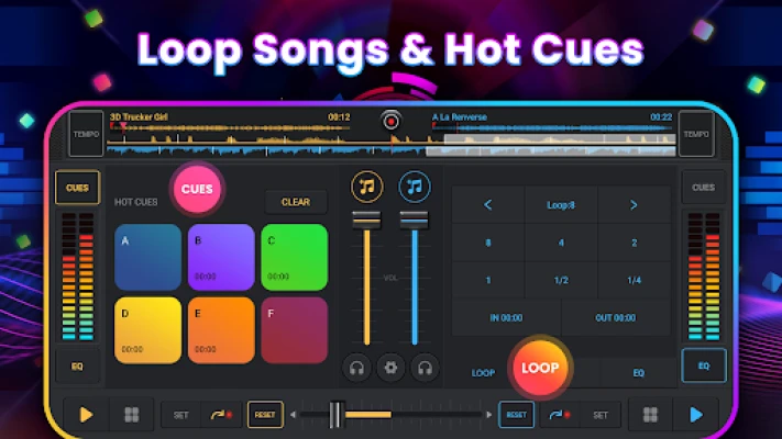 * Large buttons, optimized for small screens, simulate the realistic DJ console