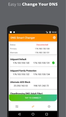 • One tap to change your DNS to 33 best DNS servers