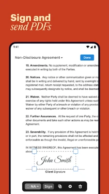 Turn your smartphone into an e signature app to keep your business moving from anywhere. Collect legally-binding electronic signatures straight from your smartphone. Add recipients, assign the fields they need to complete, and let them sign PDF from any device, all at once or in a specific order. When every document signer completes their part, you will get instant push and email notifications, so you don't miss a beat.