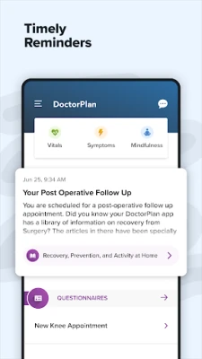 DoctorPlan believes that health happens between doctor visits. With DoctorPlan, you maintain an intelligent digital diary of your health - your symptoms, vitals, lifestyle and much more - so your doctor can review your progress and personalize your care. The app is personalized for you - specific to your health condition and your doctor’s treatment plan.