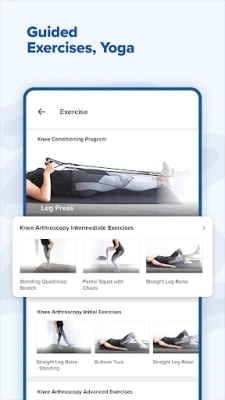 • Interactive Videos and Audio Lessons - guided exercises for prehab and rehab, lessons for mindfulness and restorative breathing, and yoga - all mapped to specific preparatory and recovery protocols.
