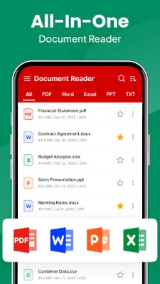 Open and view multiple file types with ease — including DOC, DOCX, XLS, XLSX, CSV, PPT, and TXT. No need for multiple apps — everything you need is here in one place.