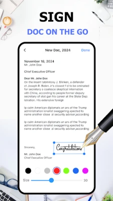 You can use this doc scanner to draw signatures in different colors on your images. Then you can resize and place them in your image or pdf files.