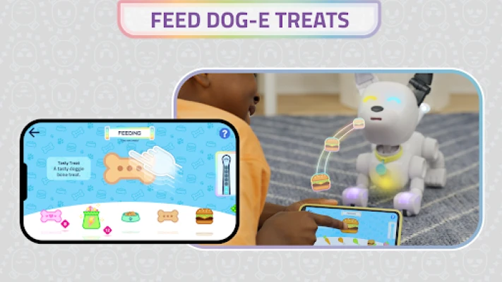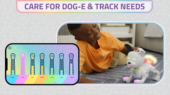 Care for, train, play games and more with Dog-E, your one in a million robot dog. Connect the app to Dog-E via Bluetooth to unlock more ways to play and see Dog-E come to life. Customize your Dog-E even more to make your robot dog totally unique to you.