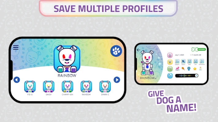 No Dog-E toy? No problem! You can Quick Mint one in a million Dog-E profiles in the app even without the toy. Even name your dogs. When you get a Dog-E toy, you can load those profiles onto your toy to bring them to life.
