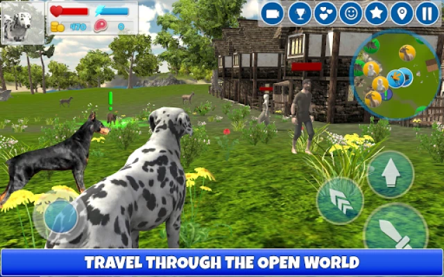 In the Dog Simulator you will travel through the game world with one of the pets you have chosen. You can make your pack of dogs and hunt animals. Also, you can make a family and improve the characteristics of each member of the pack. There are many different tasks in the large open world, you never get bored. In addition, your pack of dogs has its own house, in which you can buy different buildings.