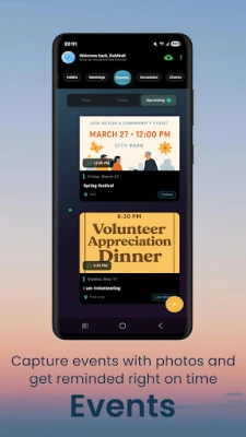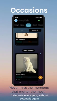 Track birthdays, anniversaries, and important dates. Revisit your Occasions every year to add new notes and visuals, turning a simple reminder into a digital scrapbook.