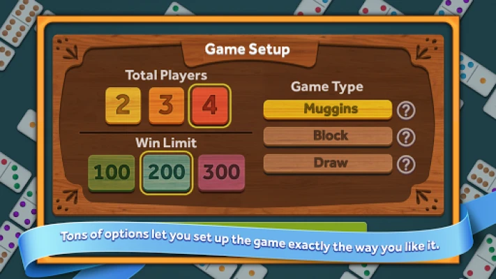 • 100% FREE • Muggins, Block, and Draw modes • Up to 4 players • Smart computer players • Easy score-keeping and statistics • 5 different domino styles and 3 game themes