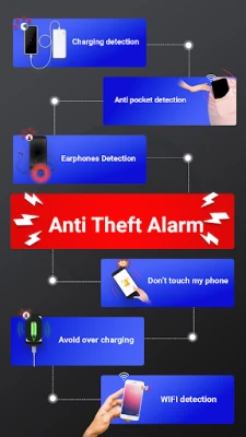 cell phone anti theft alarm phone security free motion detection feature keeps a keen eye on your device. If your phone is moved, anti theft security app alarm will alerts you with a loud alarm or discreet vibration if someone moves your phone..