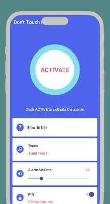The Dont touch my phone app: anti theft alarm app is very easy to use. Just place the phone on a fixed place and click the Activate button. Then none could touch my phone, once someone want to touch my phone, Anti Theft Alarm will be triggered.