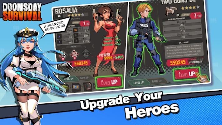 Recruit new survivor heroes to your team and upgrade their levels and abilities until they are the ultimate zombie slayers. Build exclusive team squad according to the features of the different levels. Explore the major areas to eliminate various attributes of zombies and save the survivors in crisis.