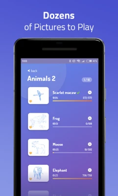 You can play relaxing free dot connect puzzles without Internet Connection. That way even when being offline you still have on you few hundred dot to dot connects, that will safely keep you from getting bored. Great deal of pictures will provide you entertainment for dozens of hours and time spent connecting the dots will become your personal therapy.