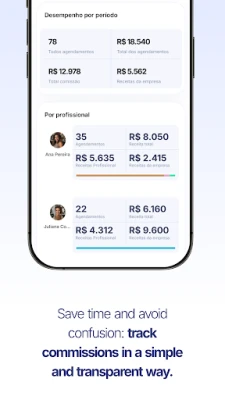 • Automatic commission calculation: the system automatically calculates how much each professional earns, by service or custom percentage