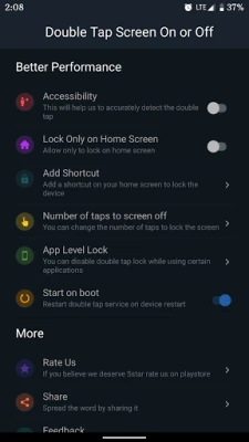 Double Tap Screen On or Off is very easy to use. Use the Double Tap Screen Lock feature to lock your device for best performance. Give it a try, if you need any new functionality, we're a click away to add your favorite functionality. We're more than happy to hear from you.