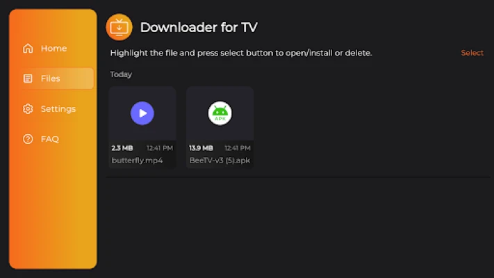 3. Download for TV can be used as a mini File Manager app, as you can view the downloads under the Files section. Here, the downloaded files can easily view, install, and delete from within the Downloader for TV app.