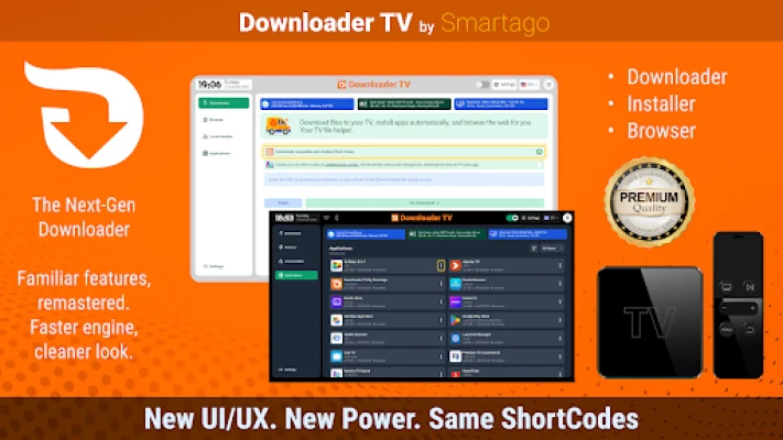 This is the ultimate **Downloader** and **File Manager** tool designed specifically for your TV. Fully compatible with existing **Shortcodes**, giving you a modern, ad-free experience to browse, download, and install apps instantly.
