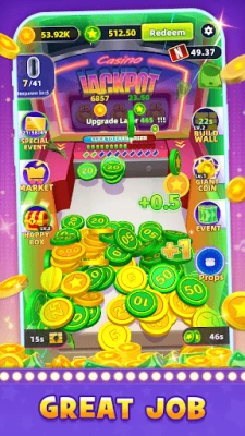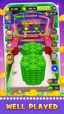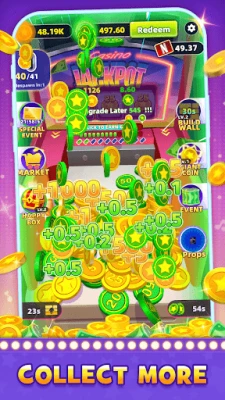 Every coin brings a new surprise. Activate powerful boosters, knock mystery chests off the edge, and fill your reward meter to unlock rare collectibles. Spin the lucky machine and see what drops next. It is always full of possibilities.