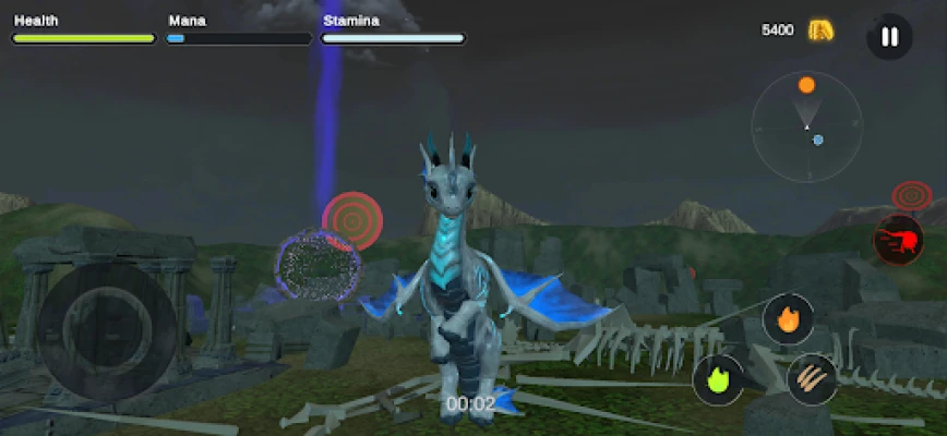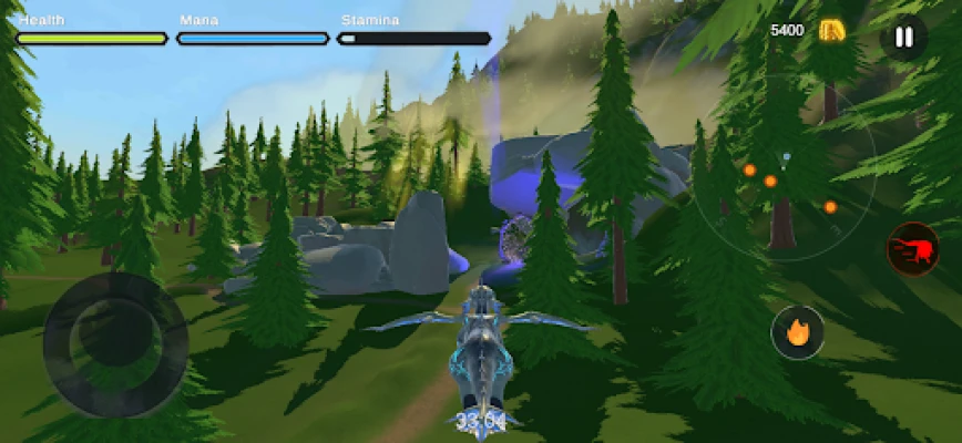 Unleash your power in this simulator by flying over mountains, diving into seas, jumping over obstacles, and running to catch animals. Breath fire and even shoot fireballs to make stronger attacks and win battles. Don’t forget to collect mana bottles to fill fire supply and take a rest to restore stamina.