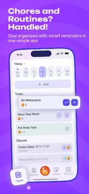 - Get support from the AI assistant: advice, tips, task and reward ideas