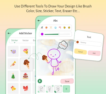 Using this application you can draw anything on pad to add text on your sketch, add different shapes, add beautiful stickers, add each sketch layers to make your sketch more beautiful.