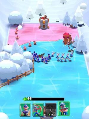With each battle you’ll have a chance to explore new terrains and strategies – draw your army on the map, choosing which soldiers to send into battle and where, as you keep an eye on your opponent. As you wage war, you’ll get to explore a variety of locations while also building up your tower defenses at the end of each level. Between the real opponents and funky equipment (mammoth anyone?) that you can collect, you’re sure to love all of the unique features we’ve crammed into the game: