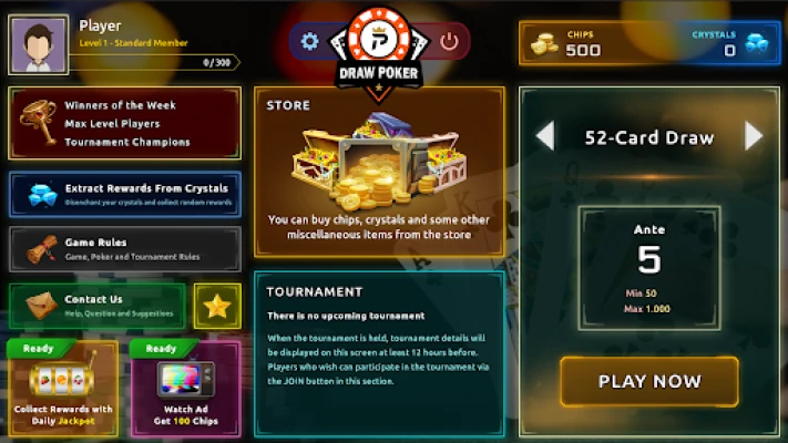 - Play with Others: Engage in online games against players from all corners of the globe, and test your poker prowess. - Variety of Modes: Enjoy different poker styles with 32 and 52-card draw poker options, offering a unique twist to traditional gameplay. - Exciting Tournaments: Participate in thrilling tournaments, held regularly, where you can compete for grand prizes and climb the ranks.