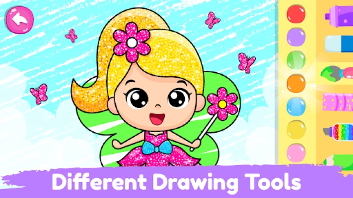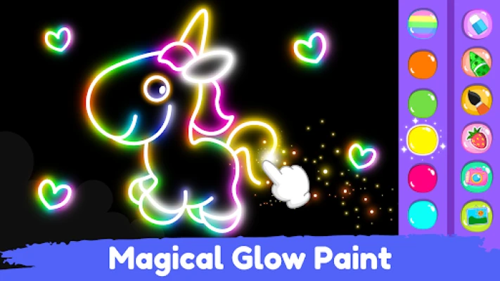 • Drawing & coloring games for preschool kids with a variety of tools like glitter, stickers, glow pen & magic brushes,