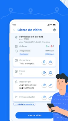 -Además, en caso de reclamos de los clientes, no tienes que rendir cuentas, ya que toda la información se encuentra registrada en la plataforma online. Por ejemplo, si un cliente reclama que no ha sido visitado a pesar de que lo has hecho según el horario programado, podrás demostrar fácilmente que la visita se realizó gracias a la información registrada en la aplicación.
