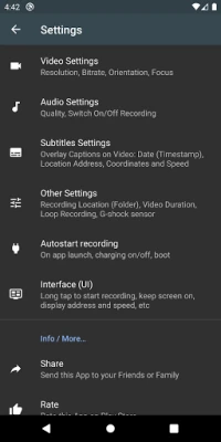 Droid Dashcam is a great driving video recorder (dashboard camera, BlackBox) app for car/vehicle drivers which can continuously record videos in loop mode, add subtitles with needed information directly on those videos (read below) and record in background, autostart recording and much more.