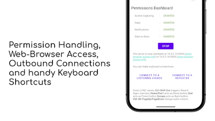 - Reverse VNC: Allow your device to initiate the VNC connection to a client.