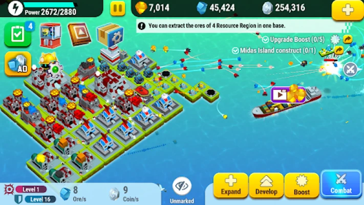 Develop your island with self-collected resources and get into battle with stronger drones!