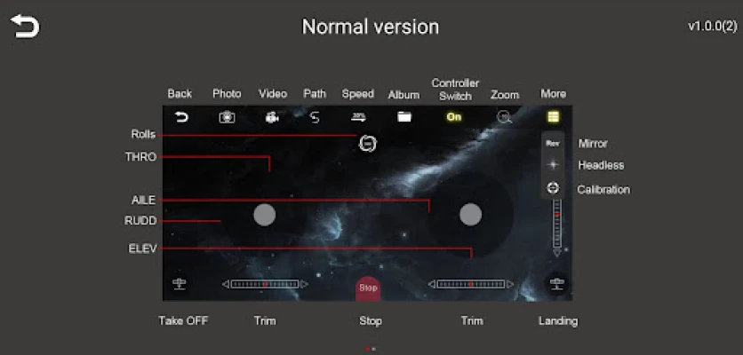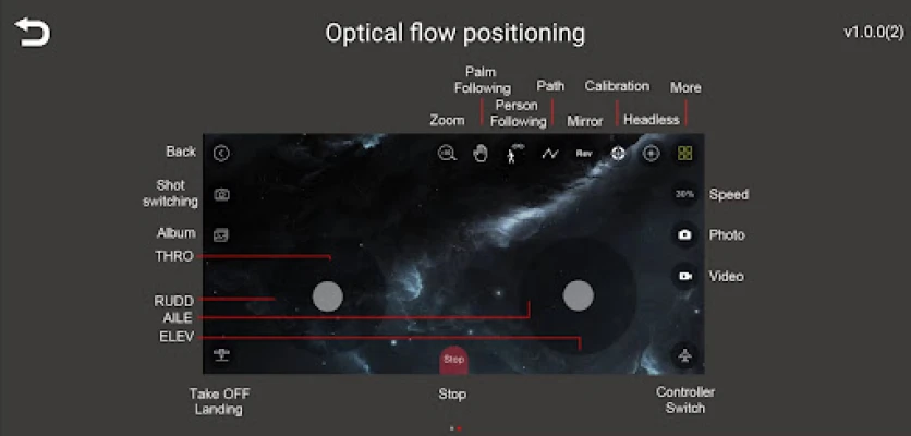 2. The flight attitude and movement of drone can be controlled through the control page. 3. You can capture and record video on the transport stream.