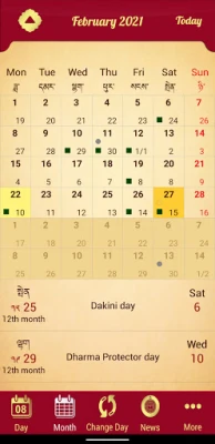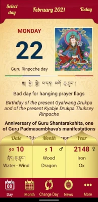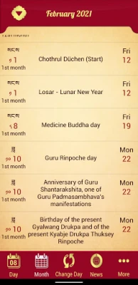 - Sacred days of Medicine Buddha, Amitabha, Guru Padmasambhava, Dakinis and Dharma Protectors