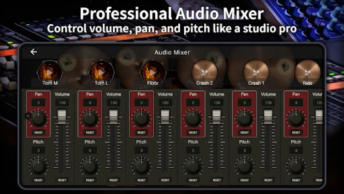 Take control of your sound. Adjust the volume, pan, and pitch of each individual drum just like in a real recording studio. Our built-in audio mixer makes your drum kit feel truly alive.