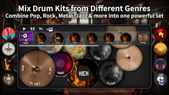 Design your ultimate drum set simulator and save it with one tap. You can load, tweak, and play with any kit youโve created at any time.