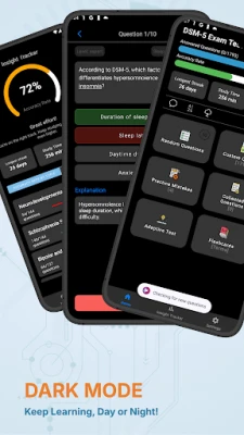 Our app is meticulously designed to envelope you in an authentic exam atmosphere, featuring a vast array of practice questions that cover all pivotal areas required for acing the DSM-5 certification.