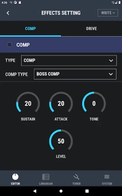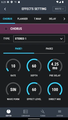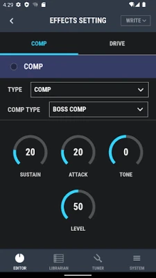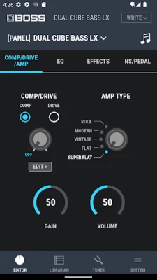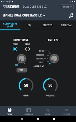 Dedicated editor for controlling functions on the BOSS DUAL CUBE BASS LX Bass Amplifier.