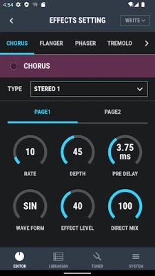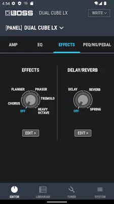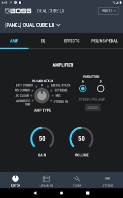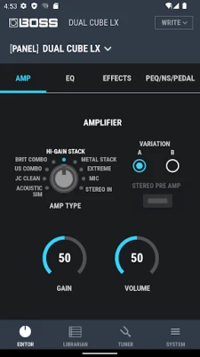 Dedicated editor for controlling functions on the BOSS DUAL CUBE LX Guitar Amplifier.
