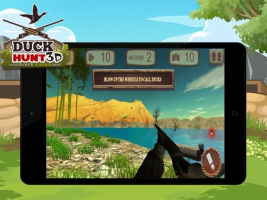 Attract the passing by ducks flock with the duck whistle, and on proper time hit the flock to hunt the maximum ducks in a single shot fired from the hunting rifle.