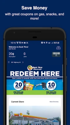 Save money at Duck Thru stores with great coupons on gas, snacks, and more! Simply tap the redeem button and show your phone at purchase to redeem your coupons.