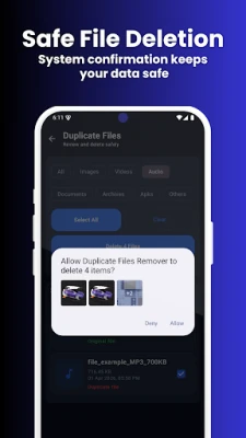 Duplicate File Remover – Cleaner helps you find and delete duplicate files from your device quickly and safely.