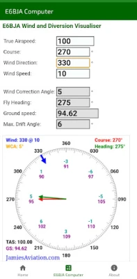E6B wind triangle, True Air Speed, Ground Speed visualiser
