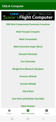 The E6BJA (Lite Edition) Flight Computer is a powerful software-based digital computer for practising performing aeronautical and flight calculations speedily and easily. Inspired by the Whiz-wheel (e.g. E6B, CR-1, CRP-1, CRP-5 etc), an ingenious and excellent teaching tool, and by the more modern handheld electronic digital flight computer, the E6BJA software app is rich in features, powerful and efficient. It can be installed on a phone or tablet --- for convenience --- and has a number of advantages over the whiz-wheel; calculations are simpler and quicker to perform, with less margin of error, better reproducibility and is less error-prone. It has a clear and intuitive user interface.