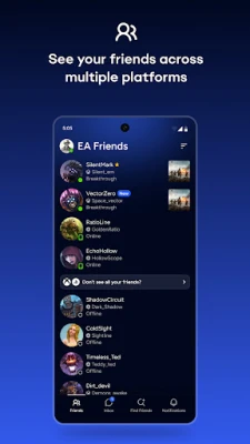 Connect with your friends no matter where they play. Search using a friend's EA ID or a username in Steam, Nintendo, PlayStation™ Network, or Xbox Network. Send a friend request, and squad up.