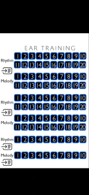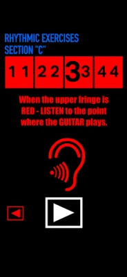 SECTION “C” has a different type of ear training exercises which are not related to any written music. Rhythmic exercises on this section are to practice the ability to reproduce a rhythmic combination just by listening to it. On the melodic exercises of this section you will listen a series of sounds and you have to recognize the higher one.