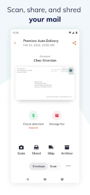 - You access your postal mail and deposit checks online. View your digital mail and decide what you want to do with it: shred it, share it, or ship it with the Earth Class Mail app.