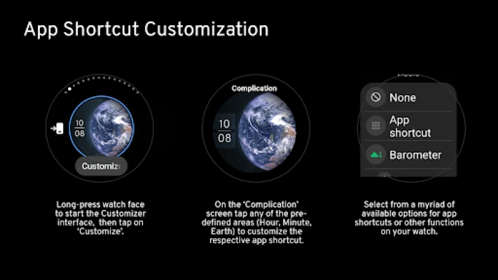 Mesmerizingly animated watch face of earth, galaxy rotation and flickering stars. Astronauts in space often describe 'Looking Back' at earth as earth gazing.