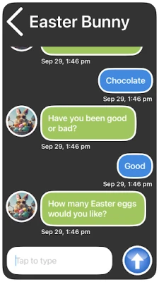- Play text messaging Easter Bunny anytime and see replies just like real! No texts are used as it is not a real text*.